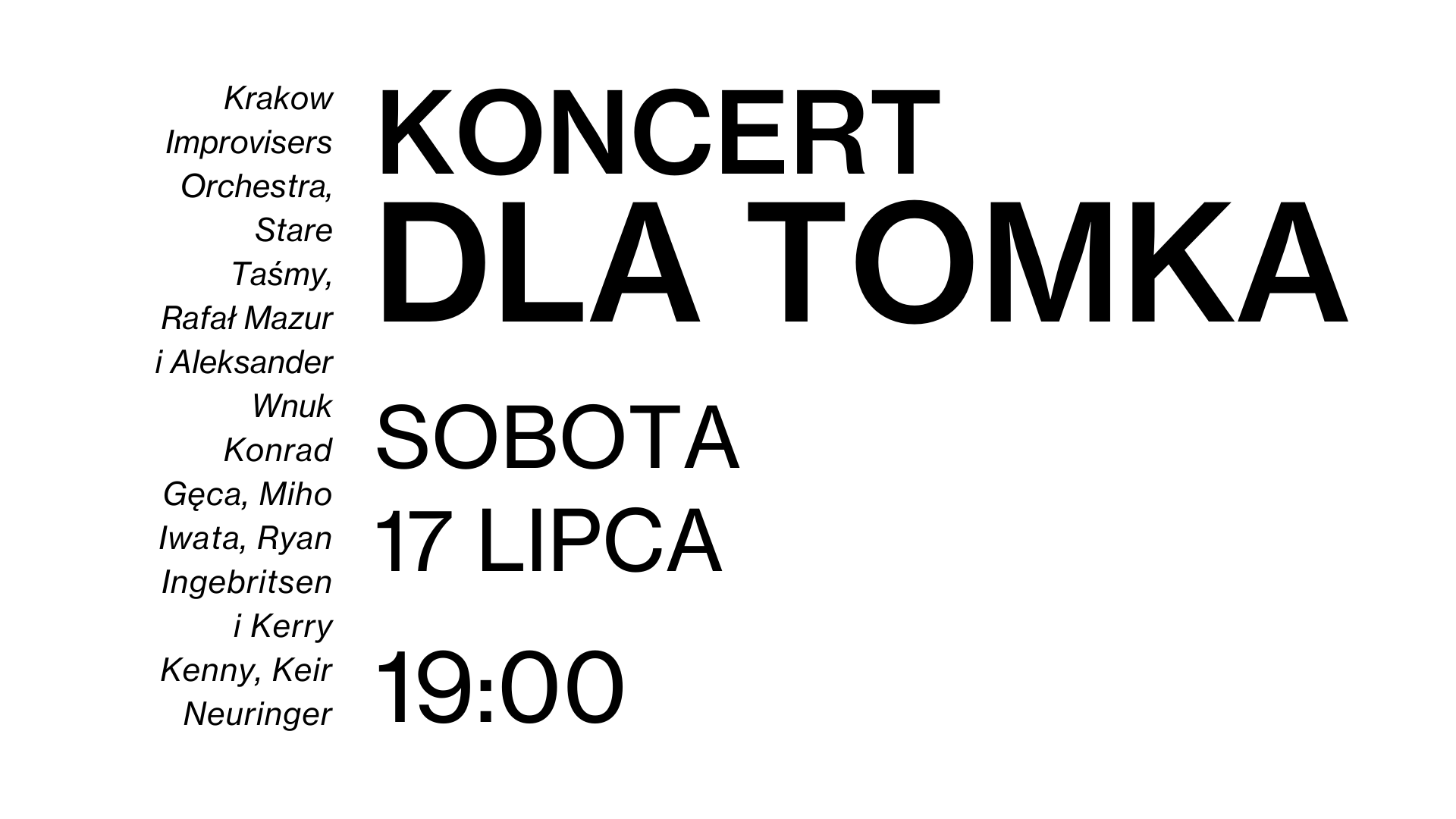 W koncercie postaramy się symbolicznie przywołać obecność Tomka, nawiązując do różnorodności jego repertuaru i działań. Występ odbędzie się na żywo, przy czym część muzyków, ze względu na odległość geograficzną i obecną sytuację, weźmie udział w koncercie zdalnie, przesyłając nagrania wideo. Sam przebieg wspomnieniowego wydarzenia będzie miał stosunkowo nieformalny charakter. Koresponduje to z rodzajem temperamentu artystycznego Tomka przejawiającego się w jego występach.
